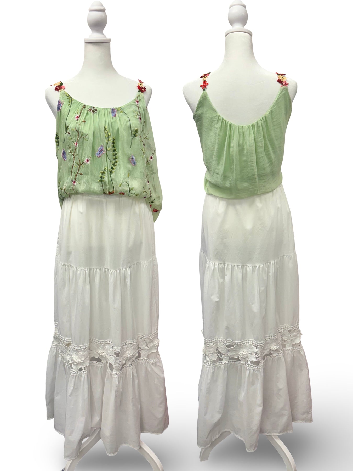 Green – fresh and vibrant with the same intricate embroidered detail